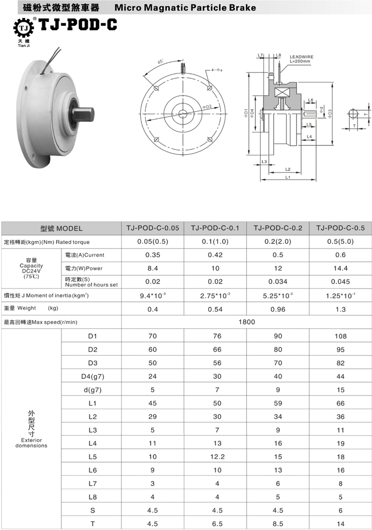 小型磁粉制動器(微型磁粉制動器)選型尺寸參數(shù):