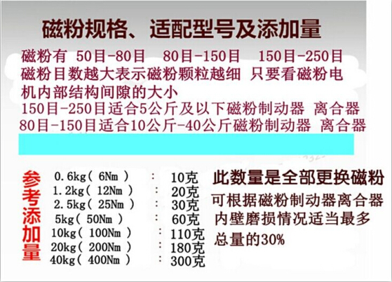 (8)下面是各型號磁粉離合器和磁粉制動器填充磁粉請參照下表: