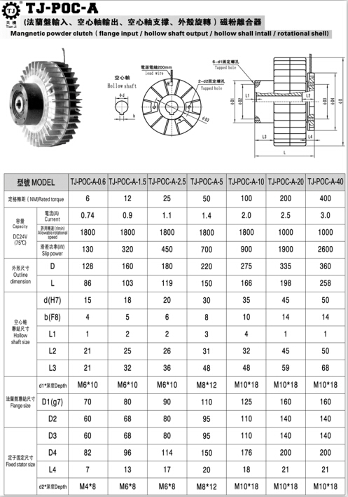 與外殼旋轉型空心軸磁粉離合器兩種類型,